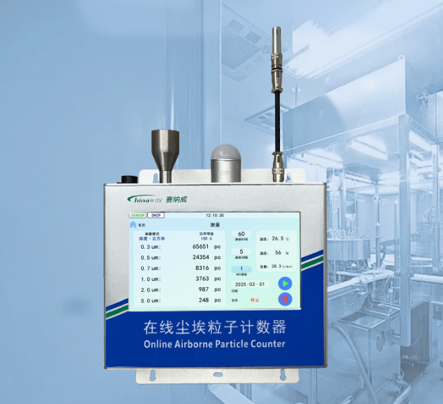 - CW-OPC601S塵埃粒子計(jì)數(shù)器是賽納威公司最新推出的可以測(cè)試0.1um的在線式粒子計(jì)數(shù)器,該產(chǎn)品采用觸摸屏設(shè)計(jì),可本地設(shè)置測(cè)試參數(shù),標(biāo)配的聲光報(bào)警裝置可及時(shí)反饋環(huán)境的潔凈狀態(tài),采用光散射原理,可準(zhǔn)確的監(jiān)測(cè)并計(jì)算單位體積內(nèi)不同粒徑的懸浮顆粒物的個(gè)數(shù),進(jìn)而判斷潔凈車(chē)間等級(jí);通過(guò)RJ45網(wǎng)絡(luò)接口、WiFi、RS485等將數(shù)據(jù)送給PC終端,實(shí)現(xiàn)7*24實(shí)時(shí)遠(yuǎn)程自動(dòng)監(jiān)測(cè)。該產(chǎn)品被廣泛應(yīng)用于芯片半導(dǎo)體集成電路廠房、醫(yī)藥、食品、電子、鋰電池等行業(yè)領(lǐng)域,是潔凈車(chē)間監(jiān)測(cè)的重要利器。